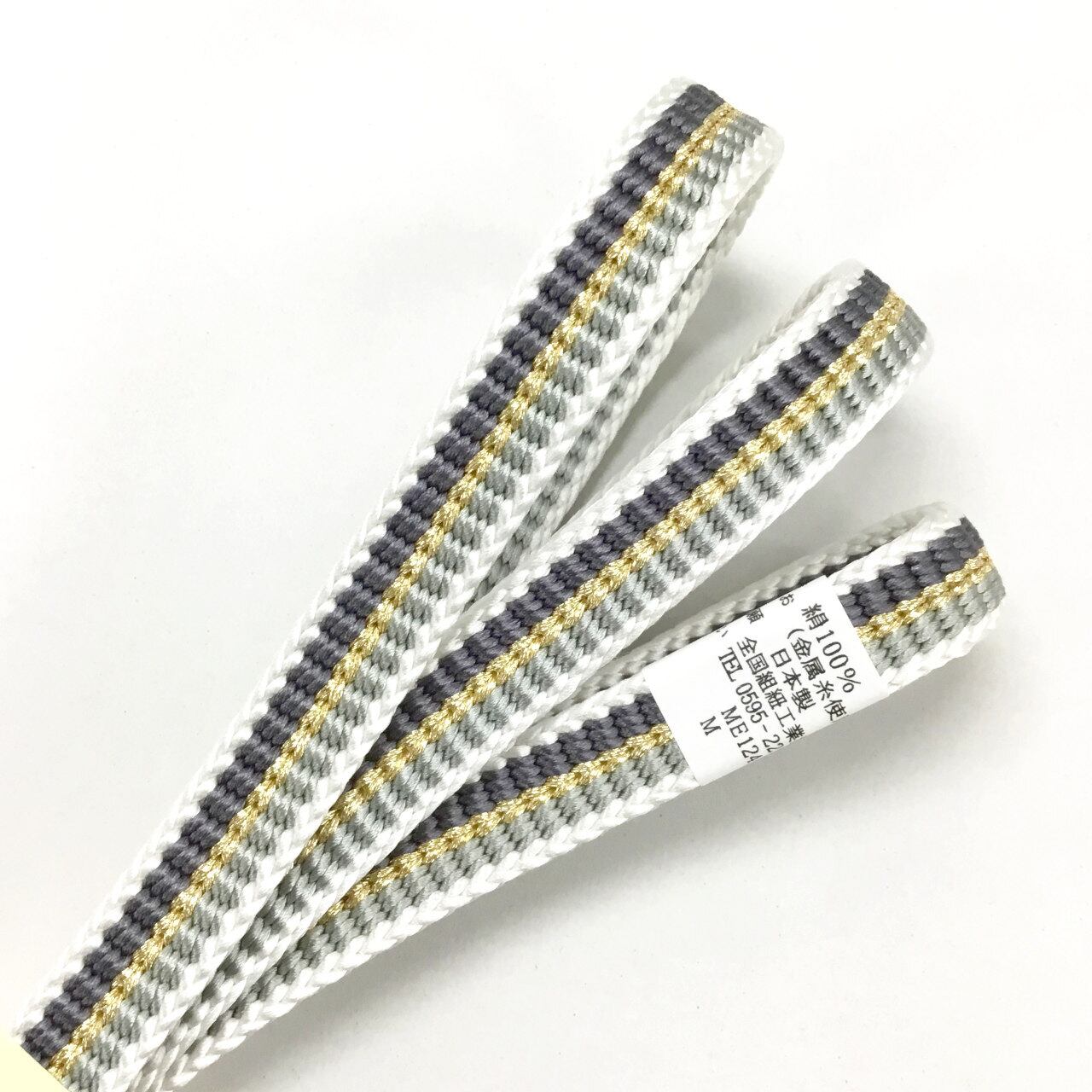 井上工房 伊賀くみひも 帯締め 綾竹組 胡粉色に藍墨茶色と灰青色 撚り房 日本製 絹100% 金属糸使用【新品】