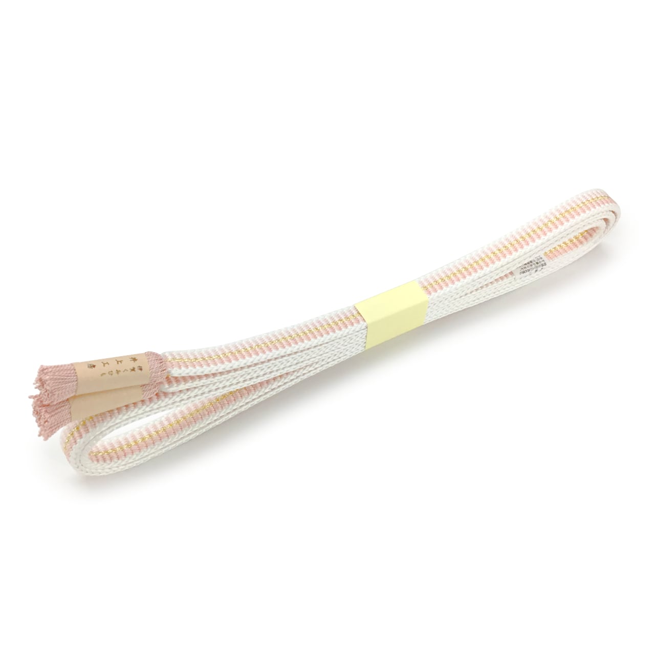 「井上工房 伊賀くみひも 帯締め 胡粉色に砥粉色と薄い淡黄色」