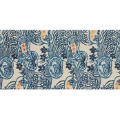 また、こちらは紅型染の中でも藍型(エーガタ)と呼ばれるもので、白になっている部分は色止めの糊を置いて琉球藍で浸け染めをし、染めあがって糊を落とした後に、鶴や亀の丸の部分に秘色色の淡い水色を挿したり、型を置いてお花の模様を染めたりされていて、非常にレベルの高い染めの技術を持つ方の手による作品だと思います。