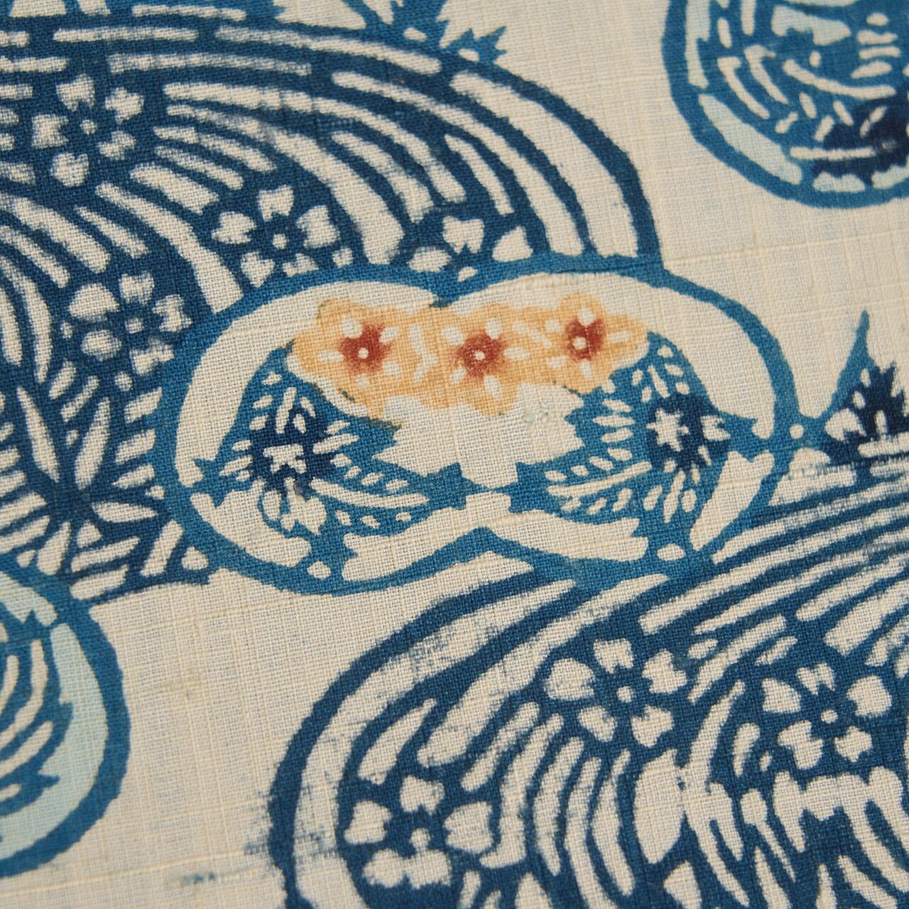 型の境目の部分や、白地の部分に少し藍が散っているところなどは、その手間がかかった証のように味わい深く感じられます。