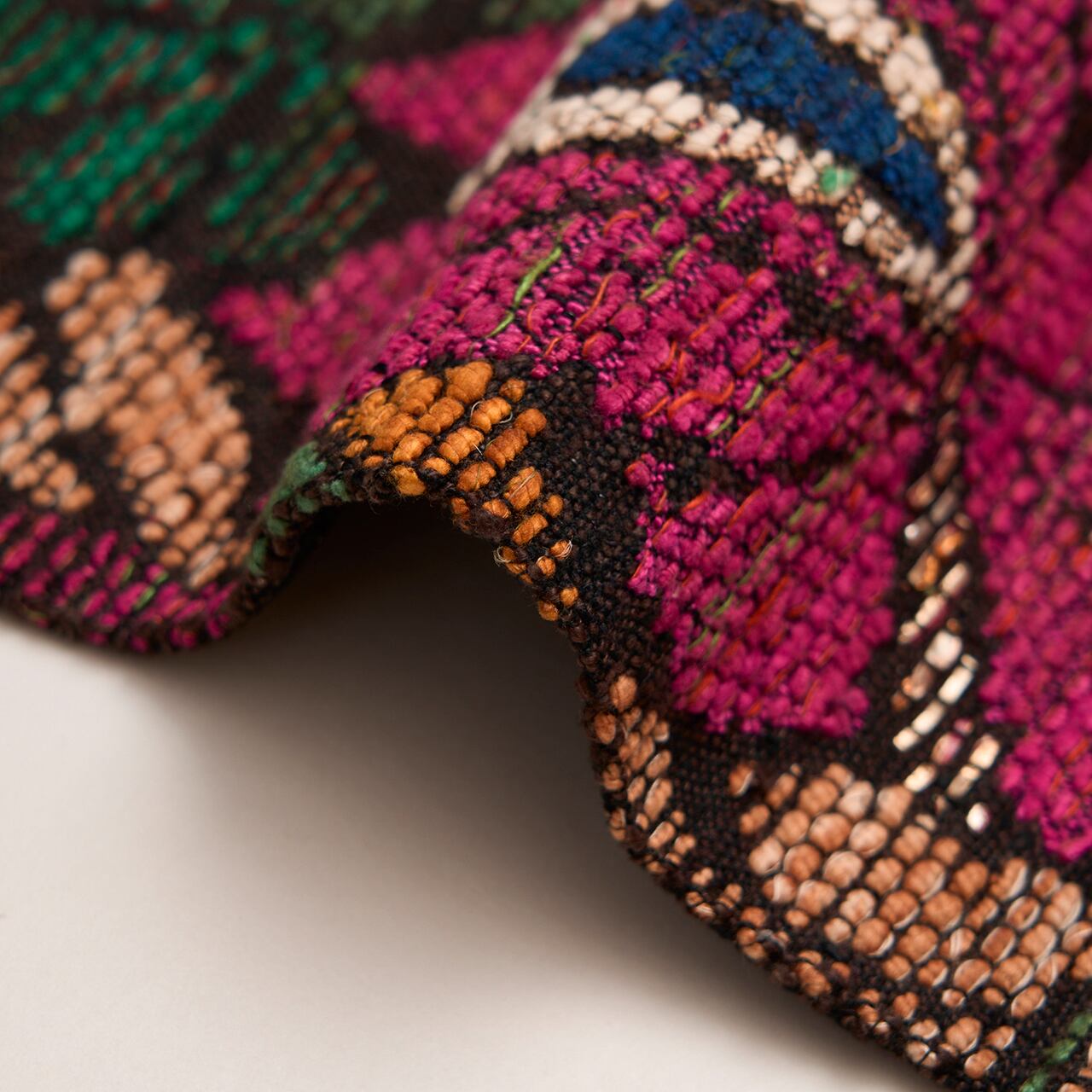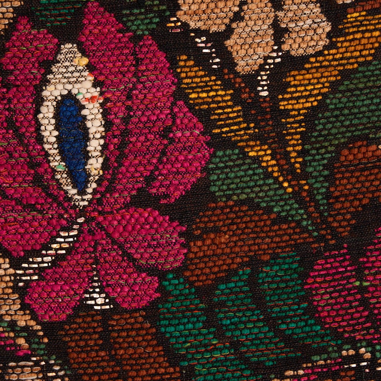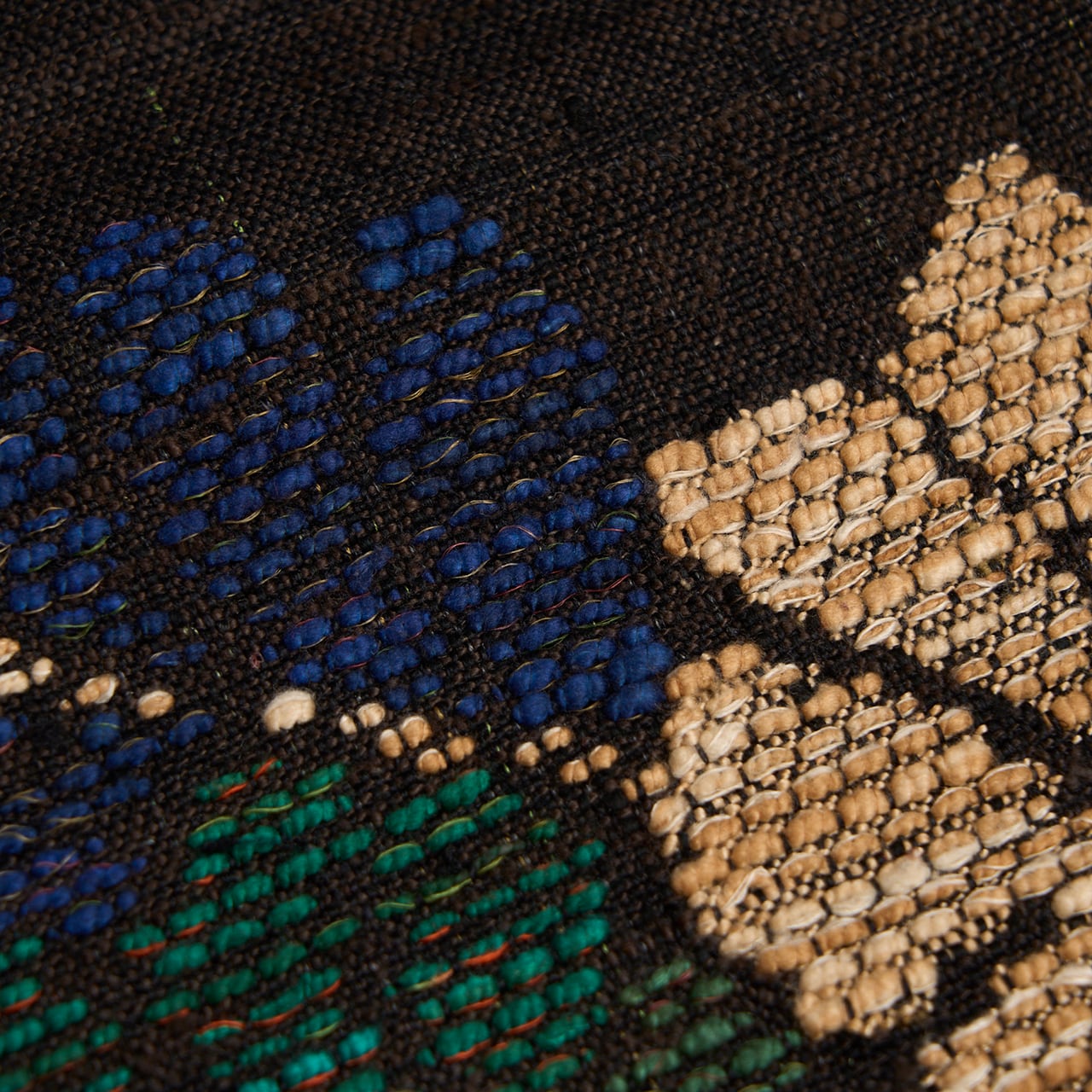 ラフなタッチの図案を、多色の糸を駆使して高い技術の手機で織り出されていますが、お花の可愛らしさと共に、その織りの味わいが伝わってきて、臨場感のある素晴らしいものとなっています。