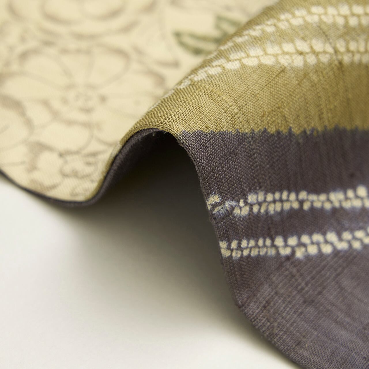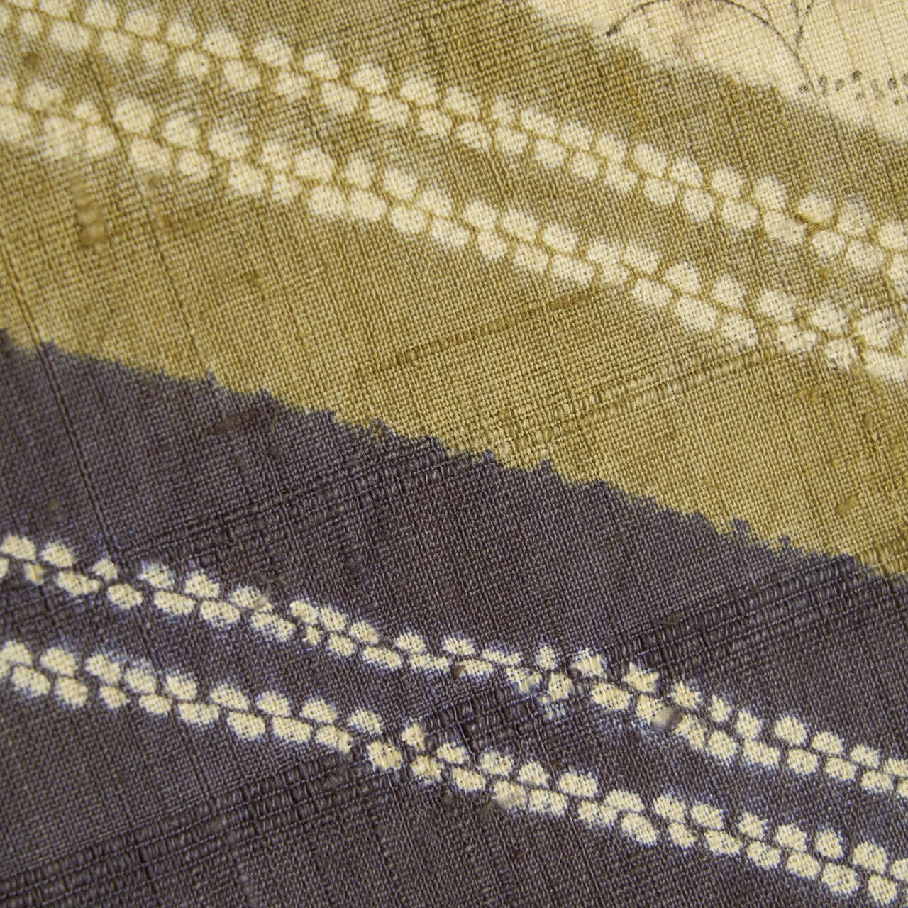 シックな色使いに古代のロマンを感じられるようで、辻が花の模様にはどことなく格調高さもあり、素敵な装いをお楽しみいただけると思える、大変おすすめの一点です。