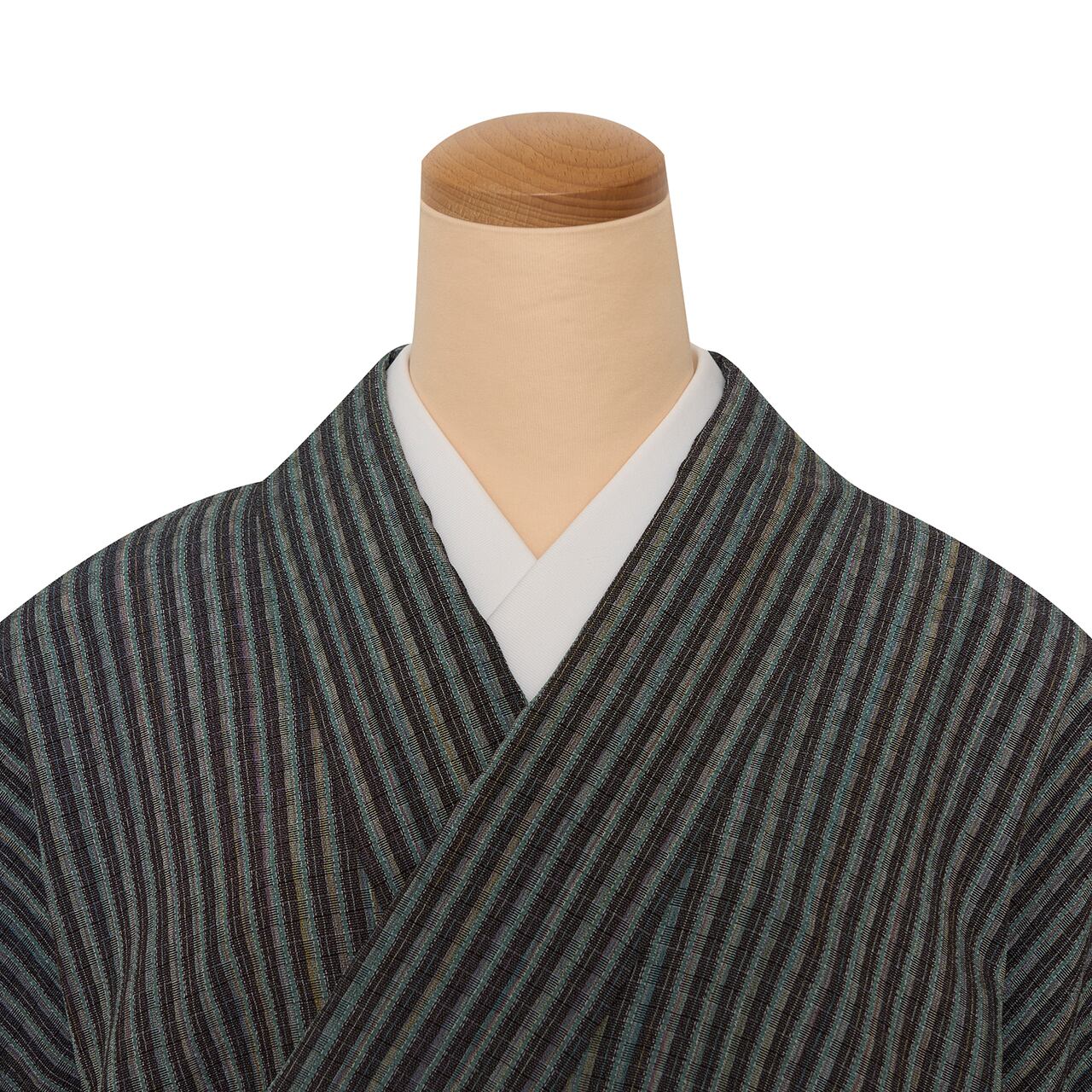 やまだ織物 本場塩沢お召 算崩し縞模様 単衣着物【未着用品】