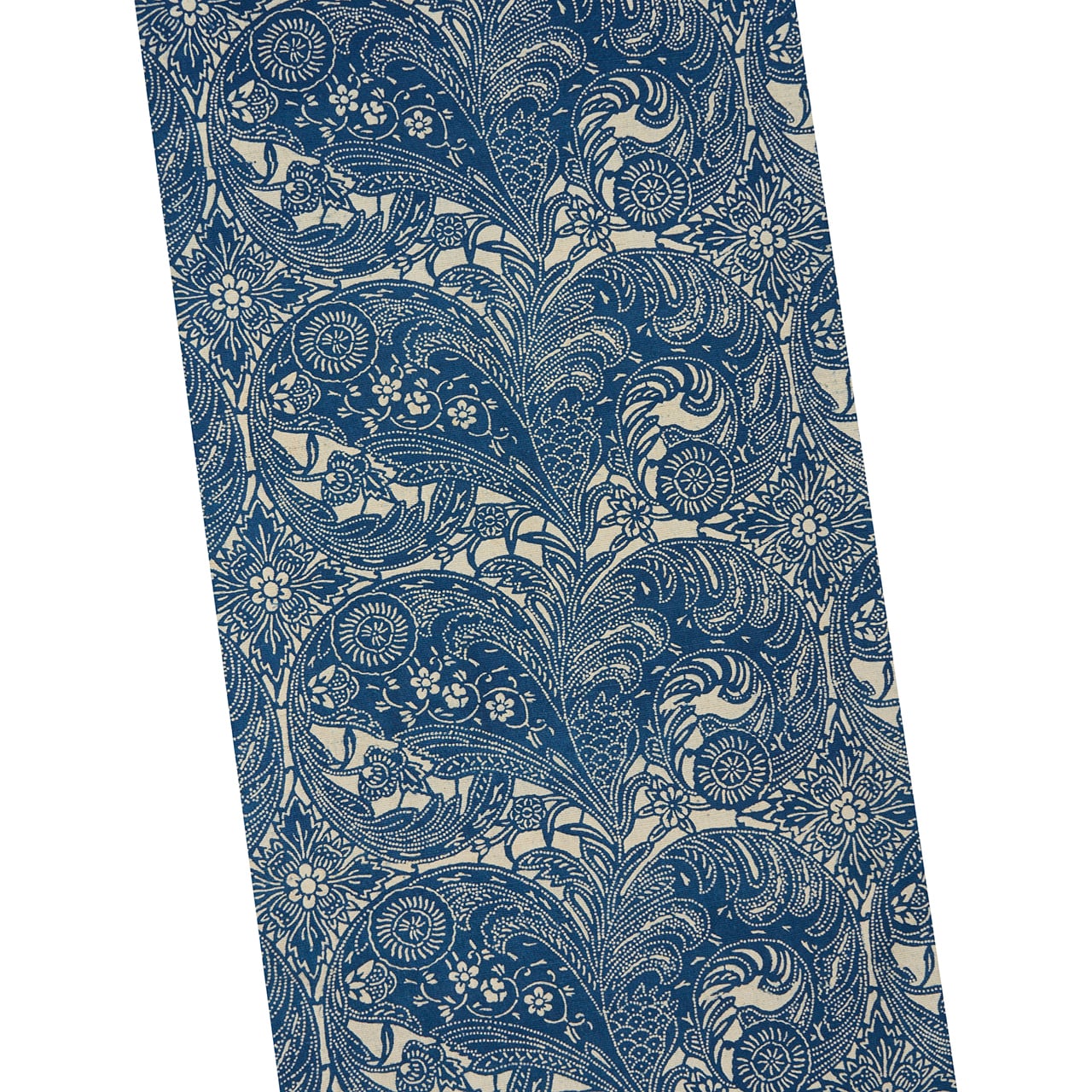 こちらは羊歯のような躍動感のある葉が、両手を広げるような形に描かれたものを中心に、小さな草花が寄り添うように描かれていたり、抽象的な花菱の模様が添えられていたりして、大胆で闊達な図案となっています。