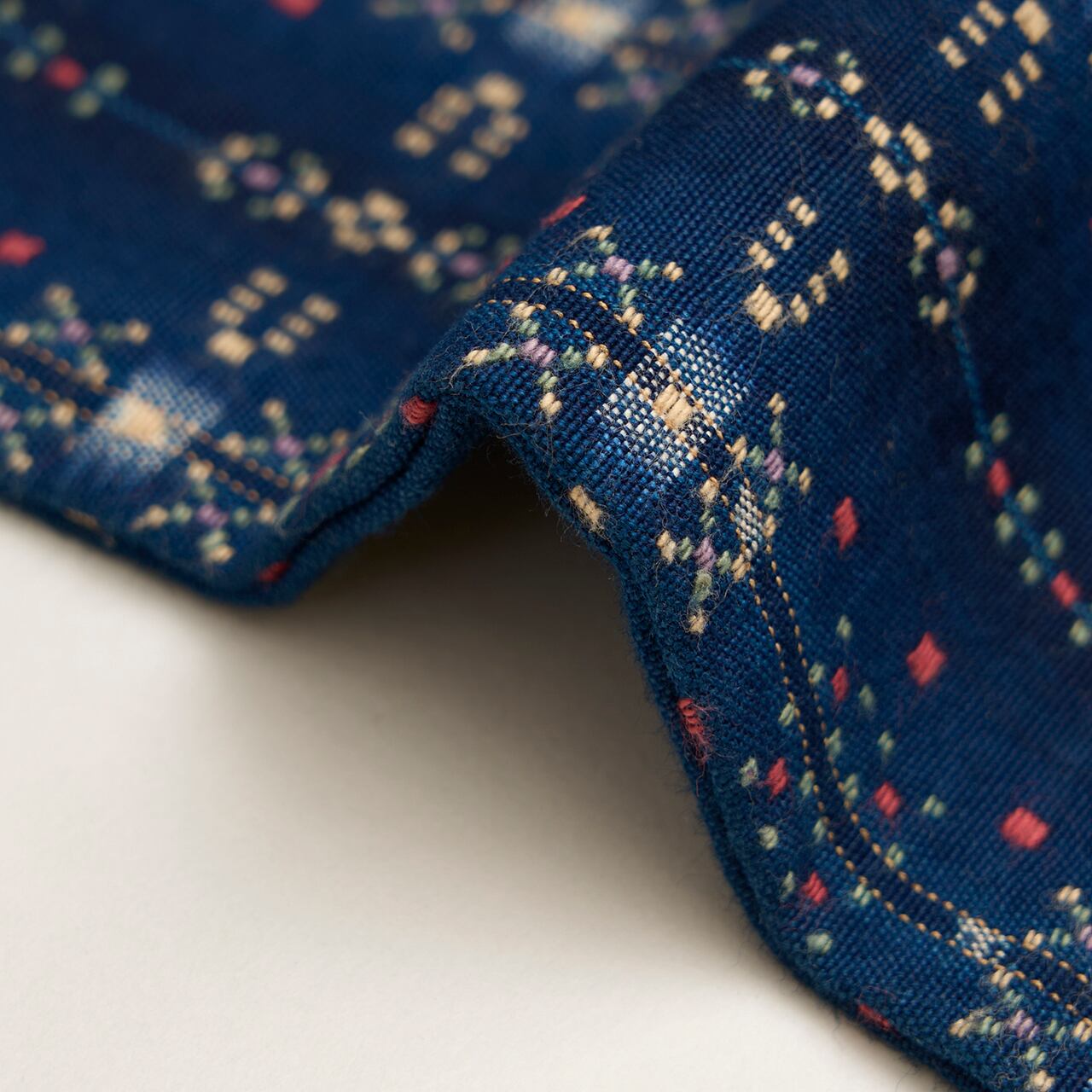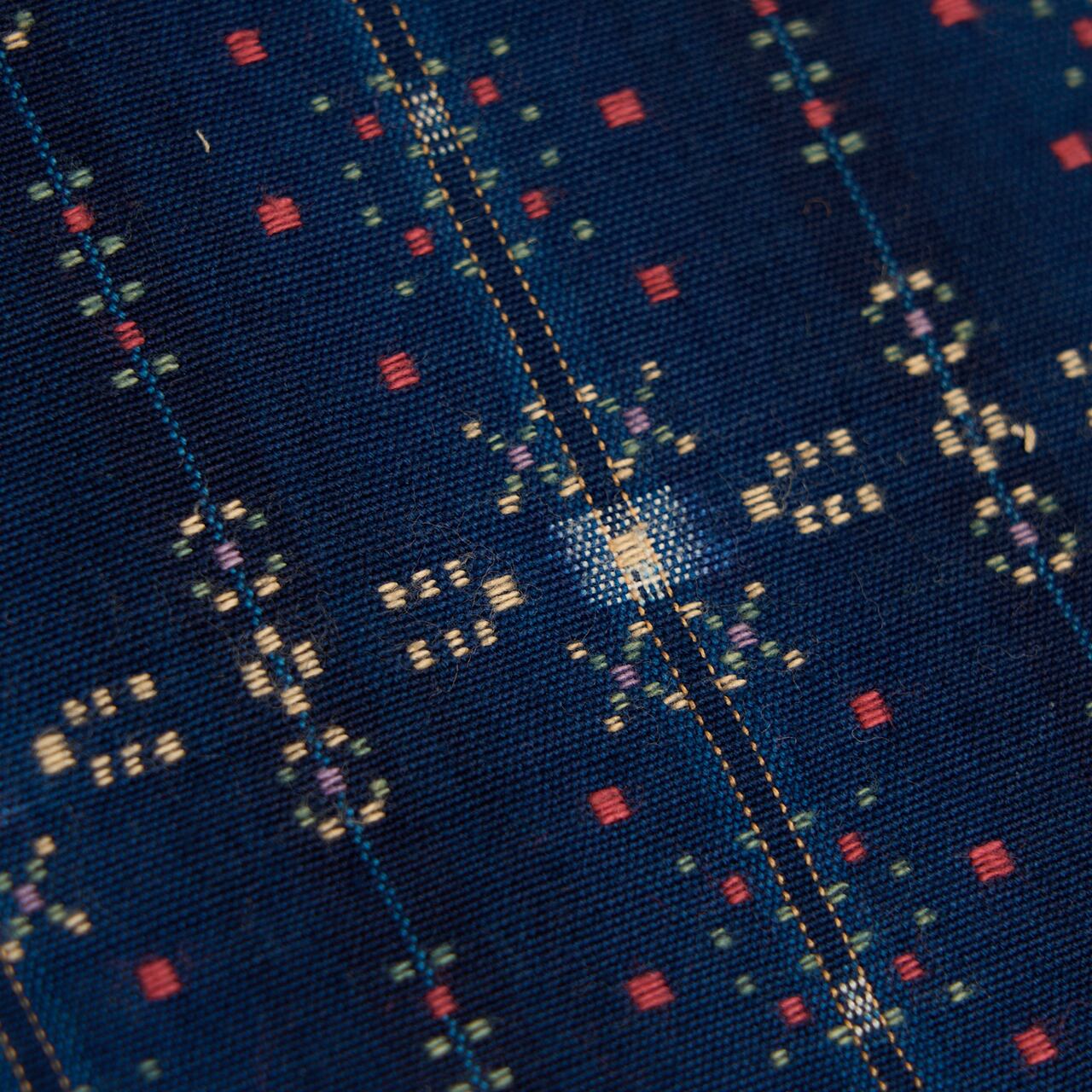 鳥巣さんは、久留米絣の重要無形文化財技術保持者である森山さんに藍染めをしていただいていたそうで、深くこっくりとしていながら透明感を感じられるような藍の色も、大変魅力的になっています。