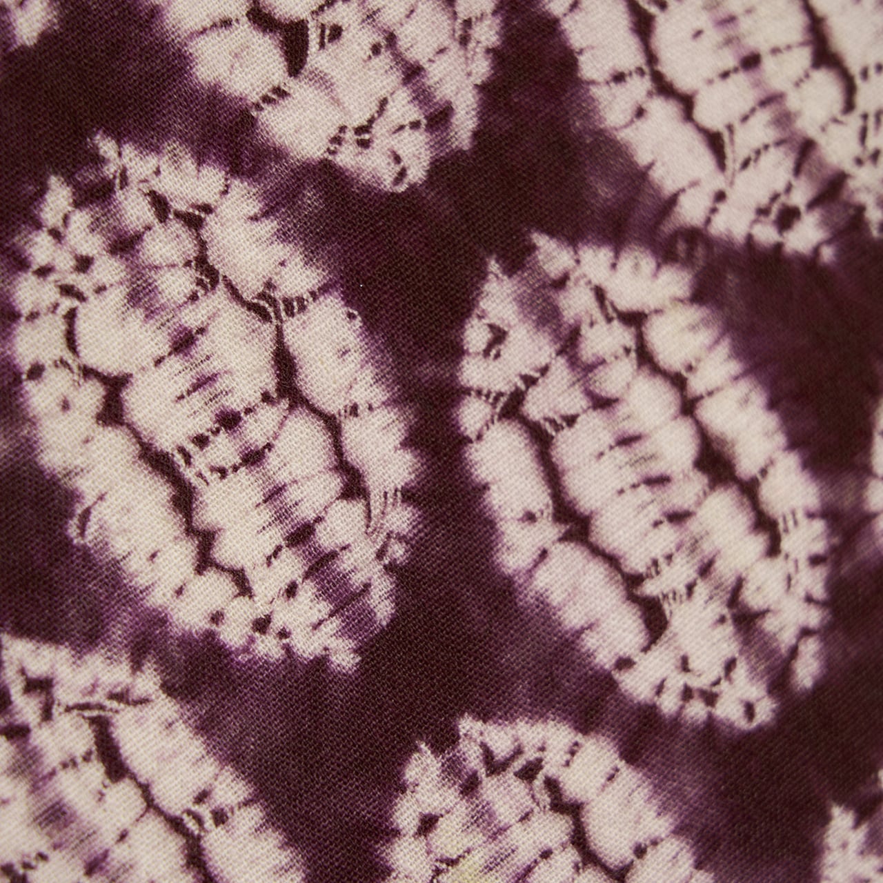 こちらのお着物はふっくらとした木綿の生地に染められていますが、今は木綿の紫根染めは創られていないそうですので、その意味でも希少性の高いものといえると思います。