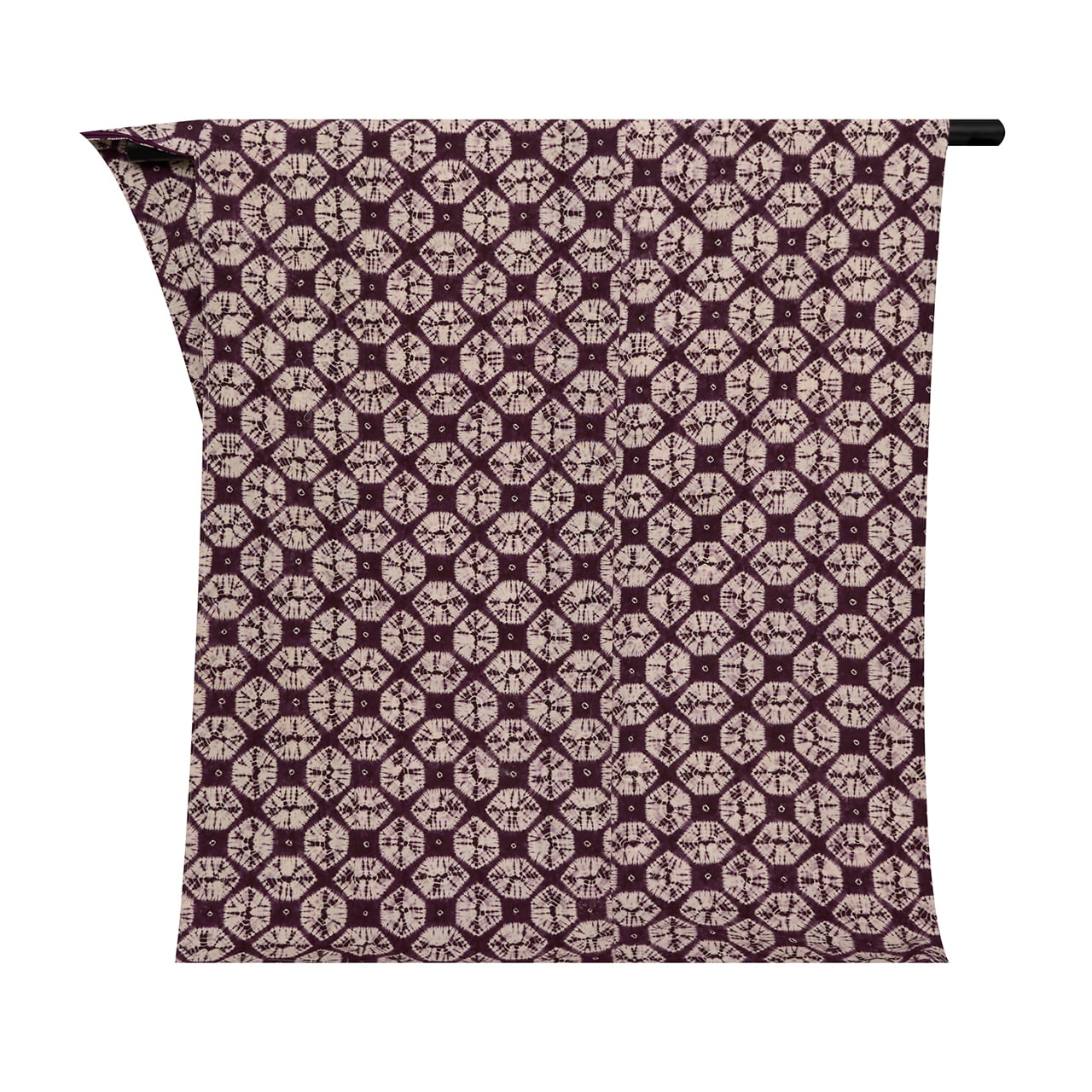 年数を重ねるほどに深い色合いになる紫根染めならではのこっくりとした色に、白い絞りが映えて、すっきりとした素敵なお着物となっています。