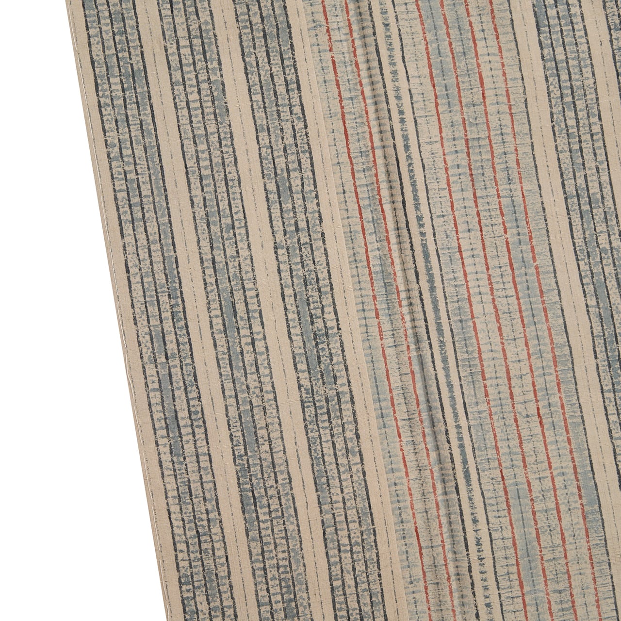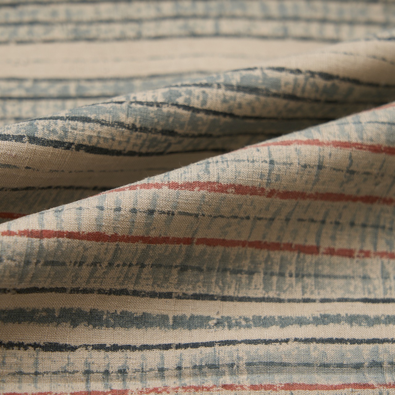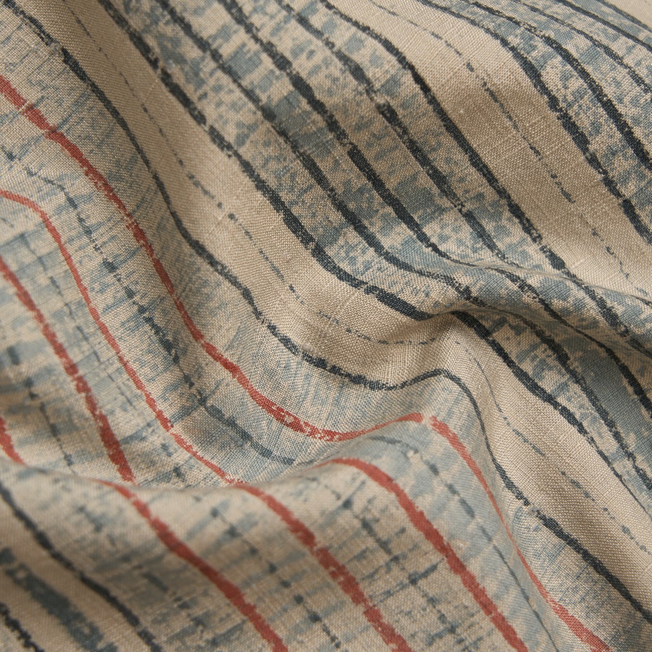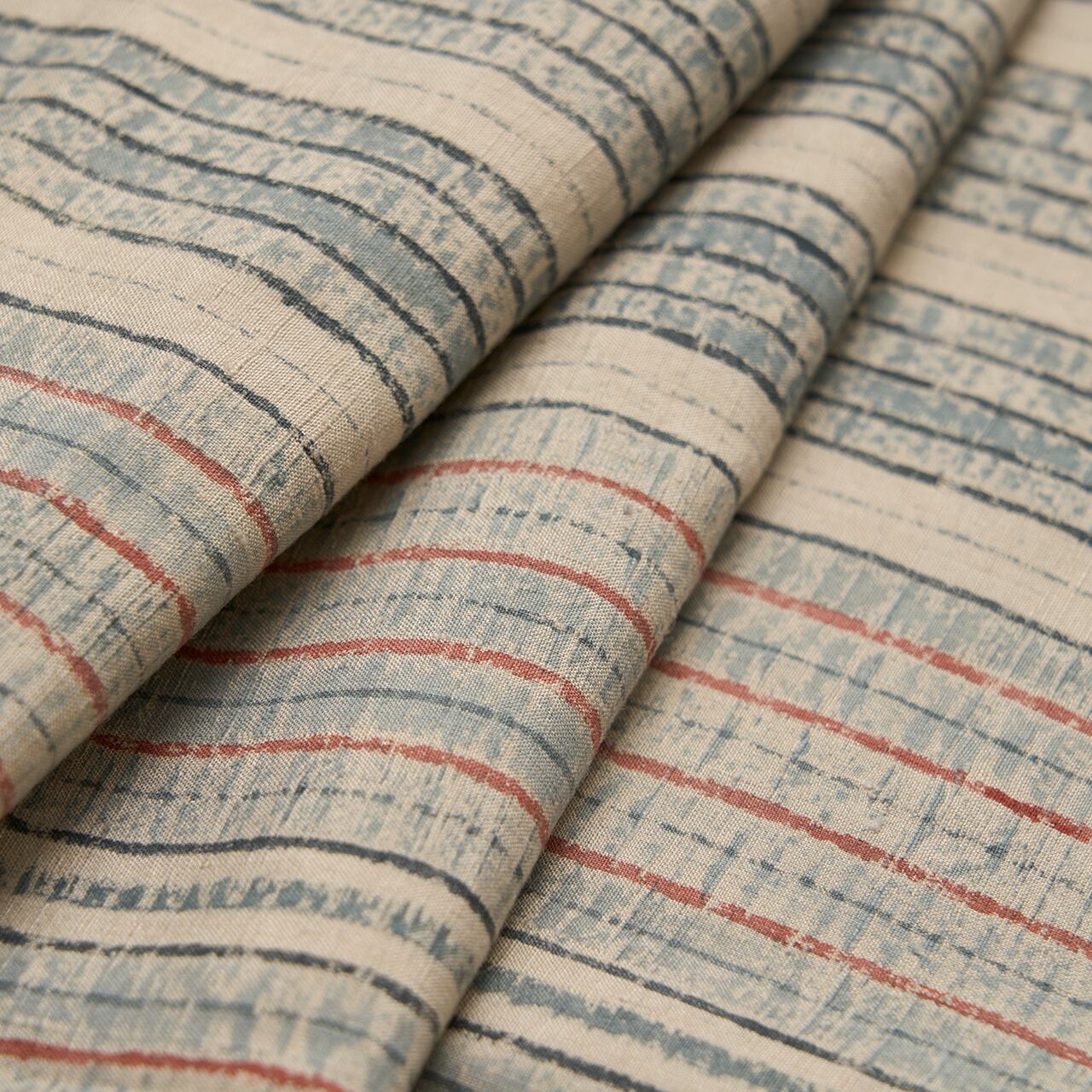 少し太くて濃い藍鉄色の縞が集合した部分は、間が少し淡い藍・藍鼠色でうめられていて、弁柄色の方は子持ち縞のようになっていて、全体的にもリズム感のある素敵な模様となっています。