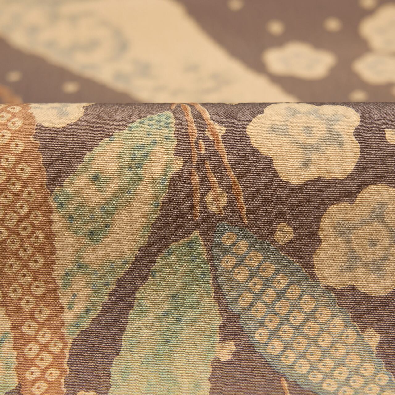 こちらの帯ですと、柔らかい素材のお着物にも、趣味系の紬類のお着物にも、広い範囲で合わせていただけると思います。