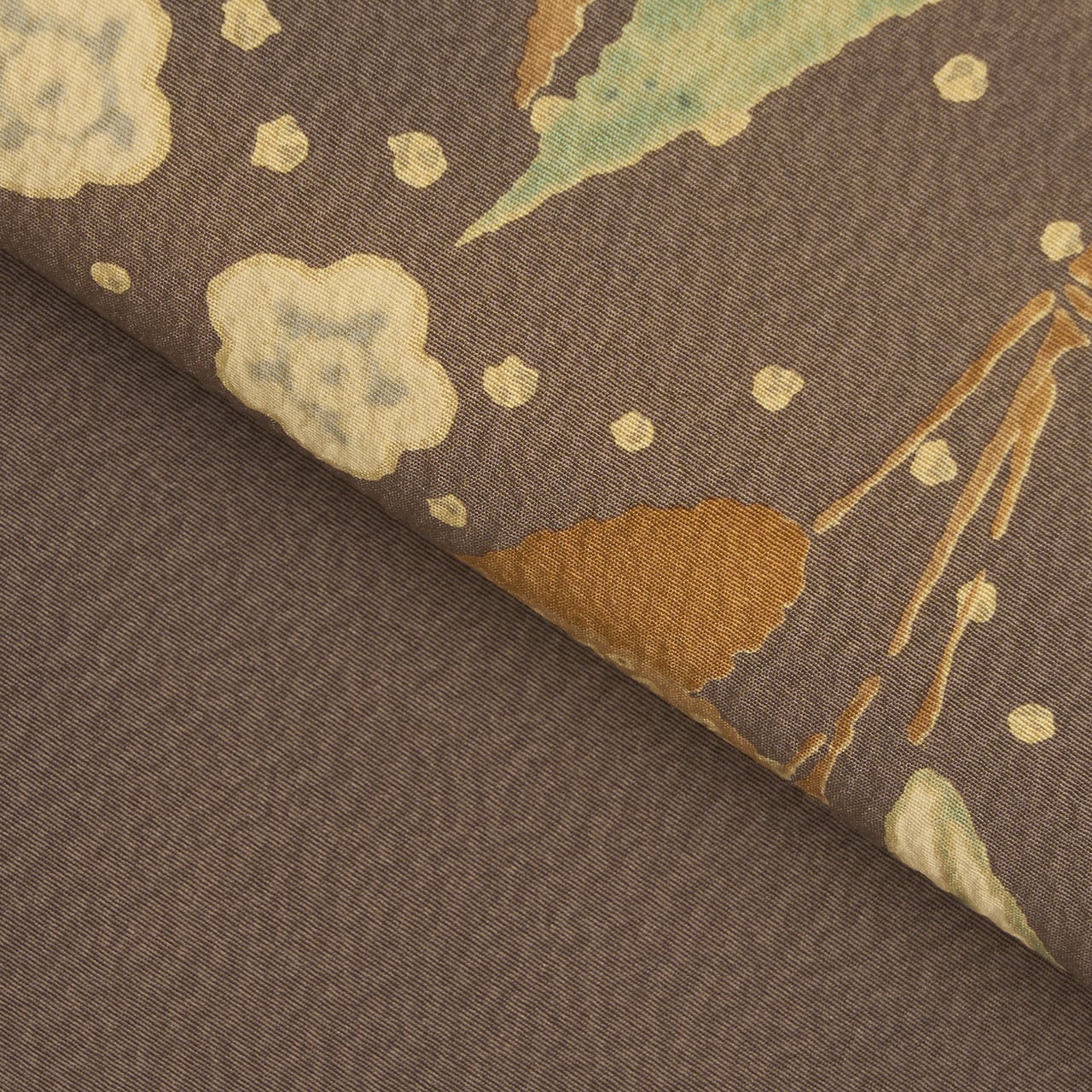 紗がかかったような少しスモーキーな色調が優しい雰囲気となっていて、いろいろなお着物と合わせていただきやすいと思います。