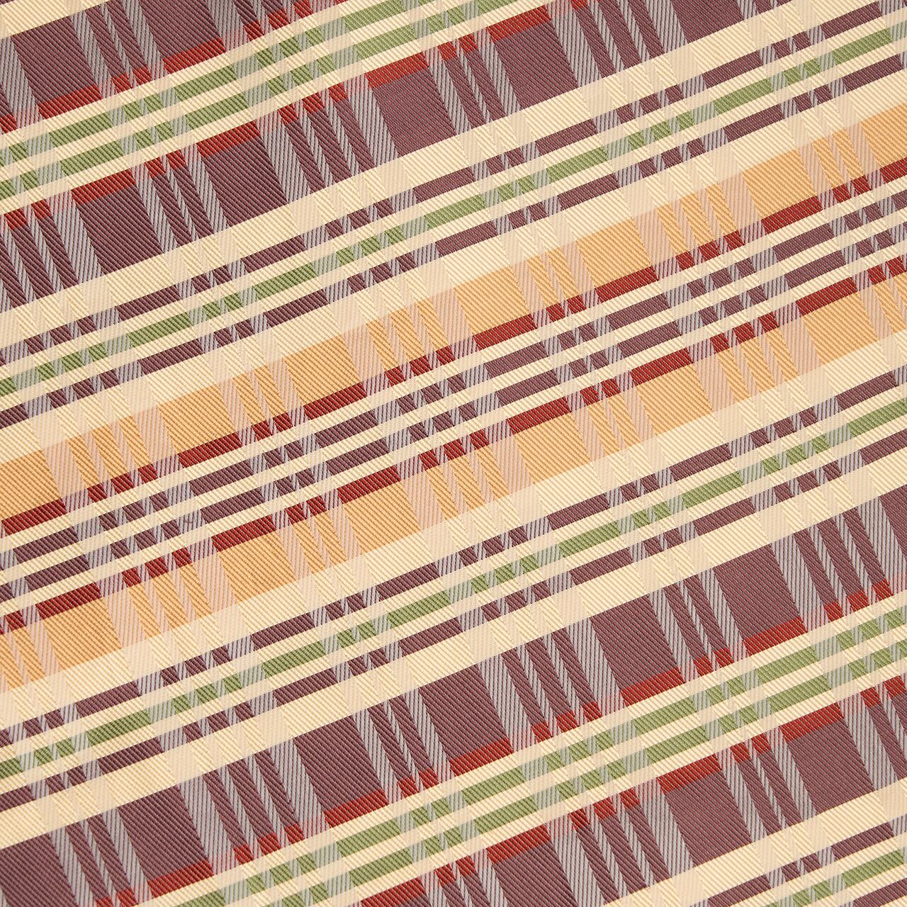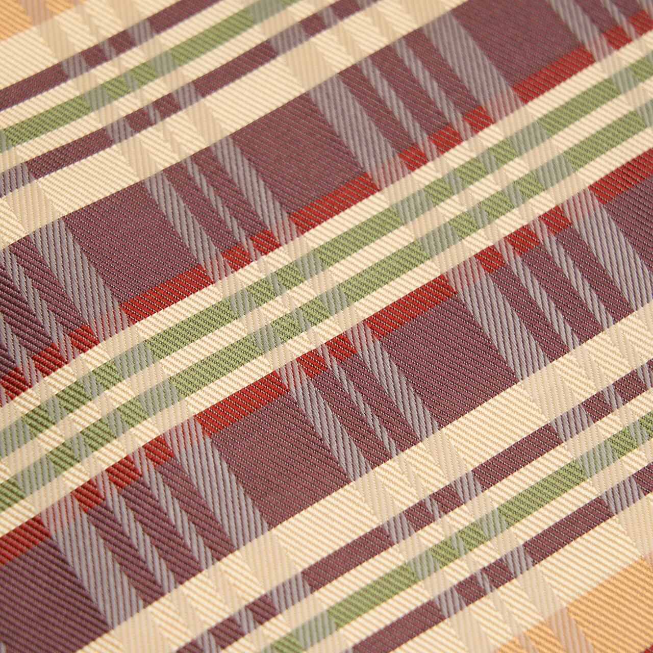 能装束の厚板格子に取材したものと思われる織りと色使いで、気品のある帯となっています。