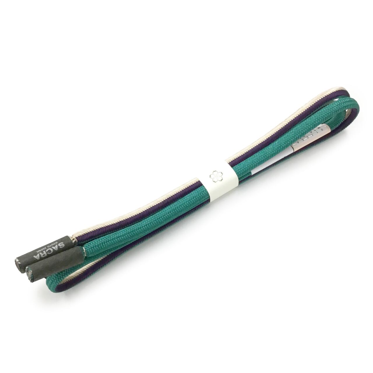 和小物さくら 帯締め 丸唐大和 濃い青緑色に深紫色と灰白色 絹100%【新品】