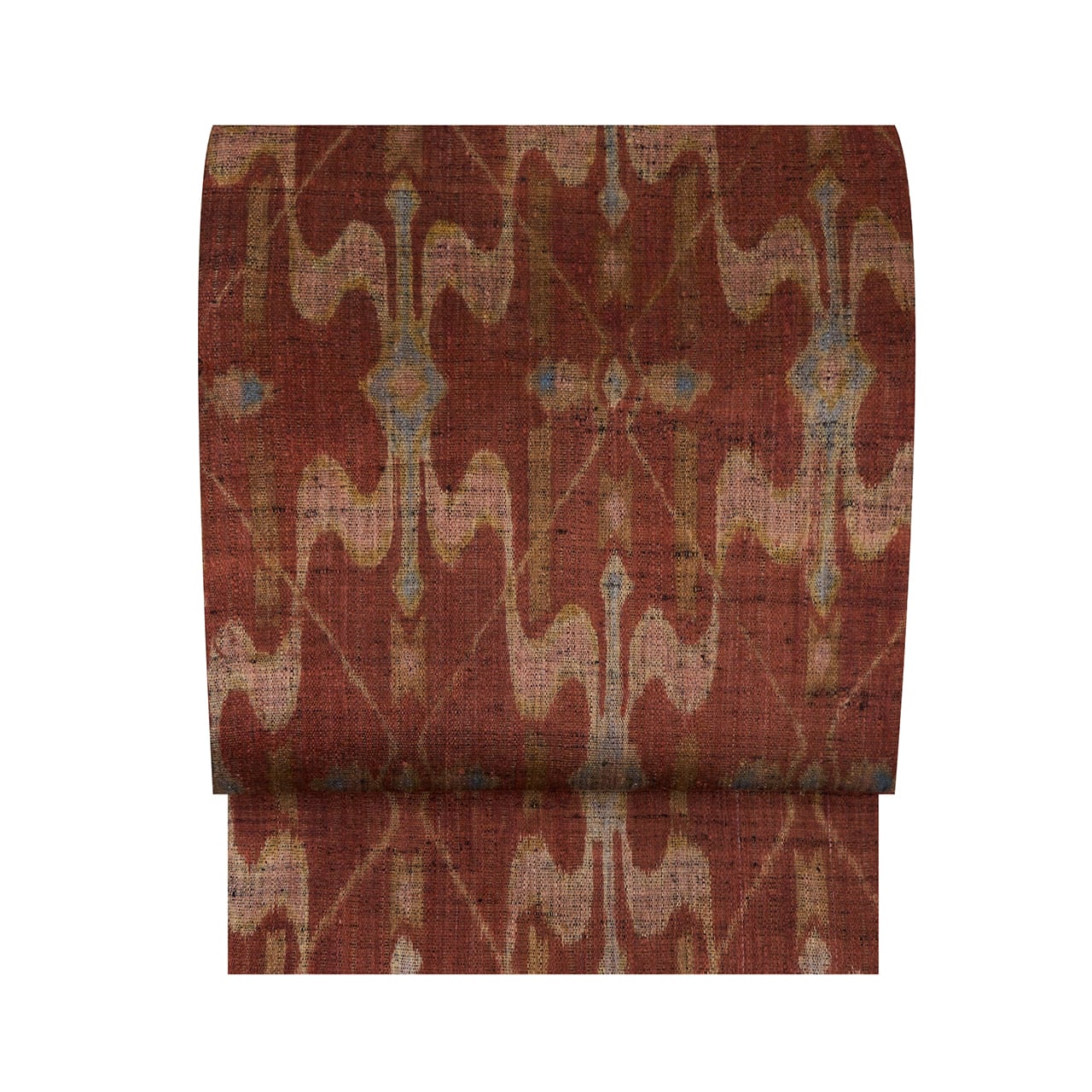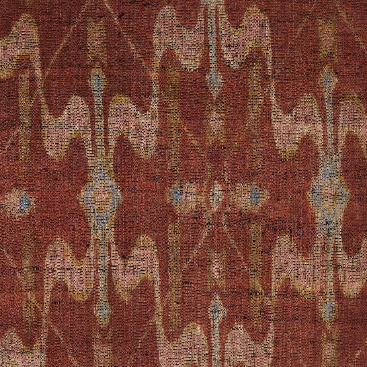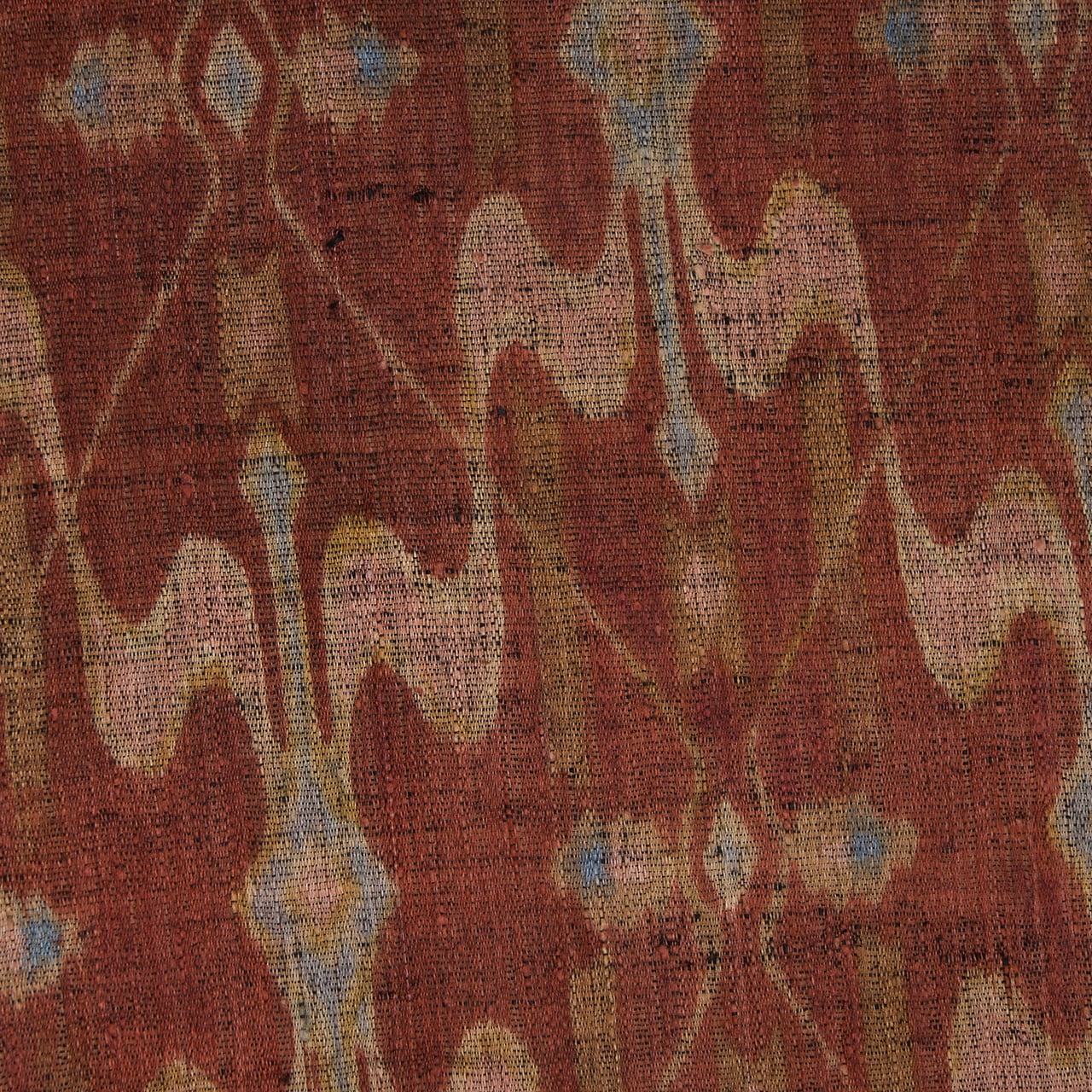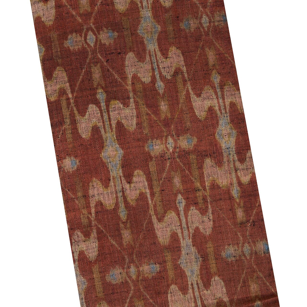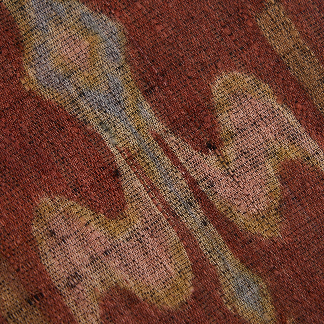 経の絣糸によって模様が織り出されますが、山岳や人物を造形化したものなど様々で、現在ではインドネシア産などのイカットの布などにそれに近いものを見ることができます。