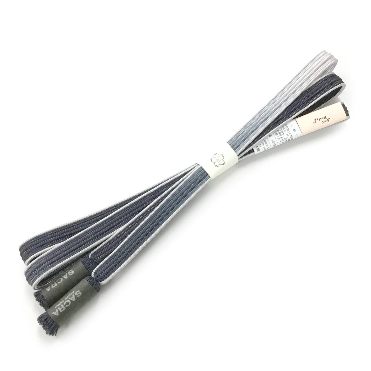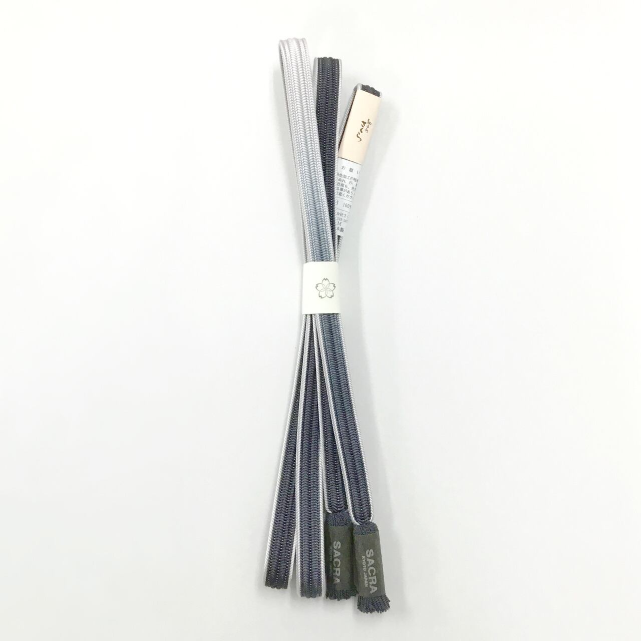 和小物さくら 帯締め 綾竹双葉暈し 丼鼠色に紫水晶色 絹100% 撚り房【新品】