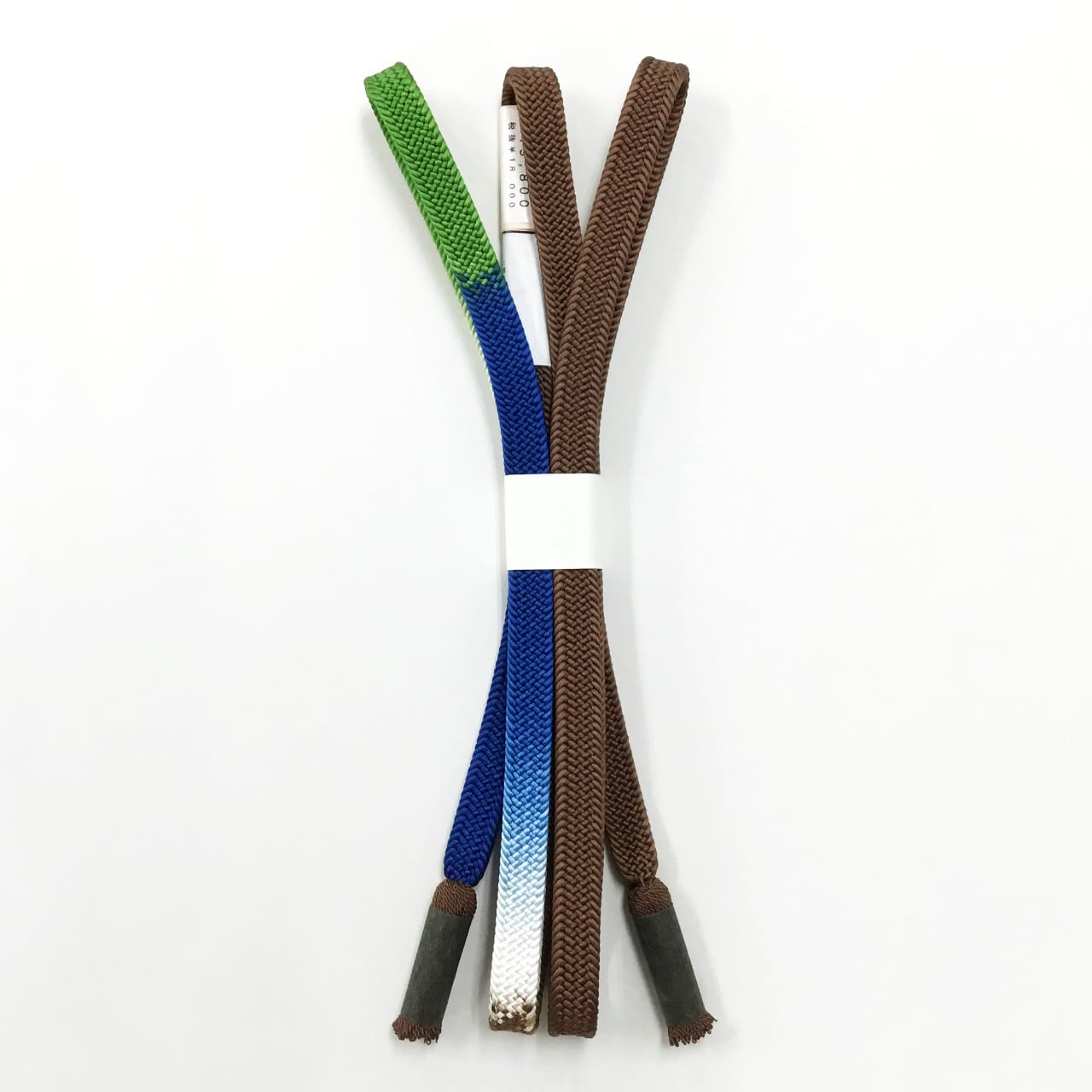 和小物さくら 帯締め 耳高内記三色暈し 黒茶色に深縹色と白色と濃い鶸萌黄色 絹100% 撚り房【新品】