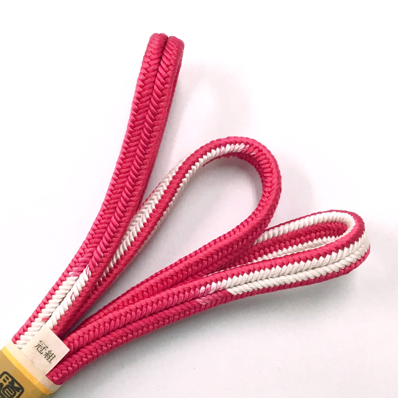 道明 帯締め 冠組 暈し 韓紅色に生成り色 ※薄シミあり【未着用品】