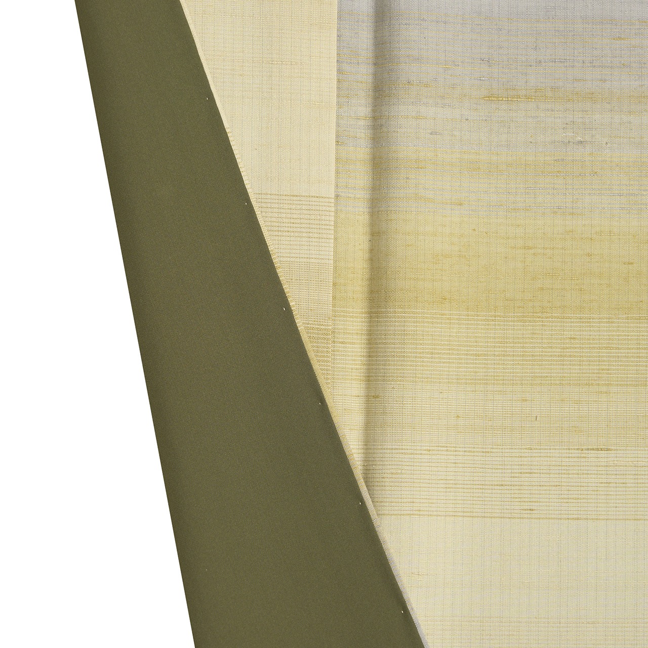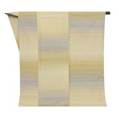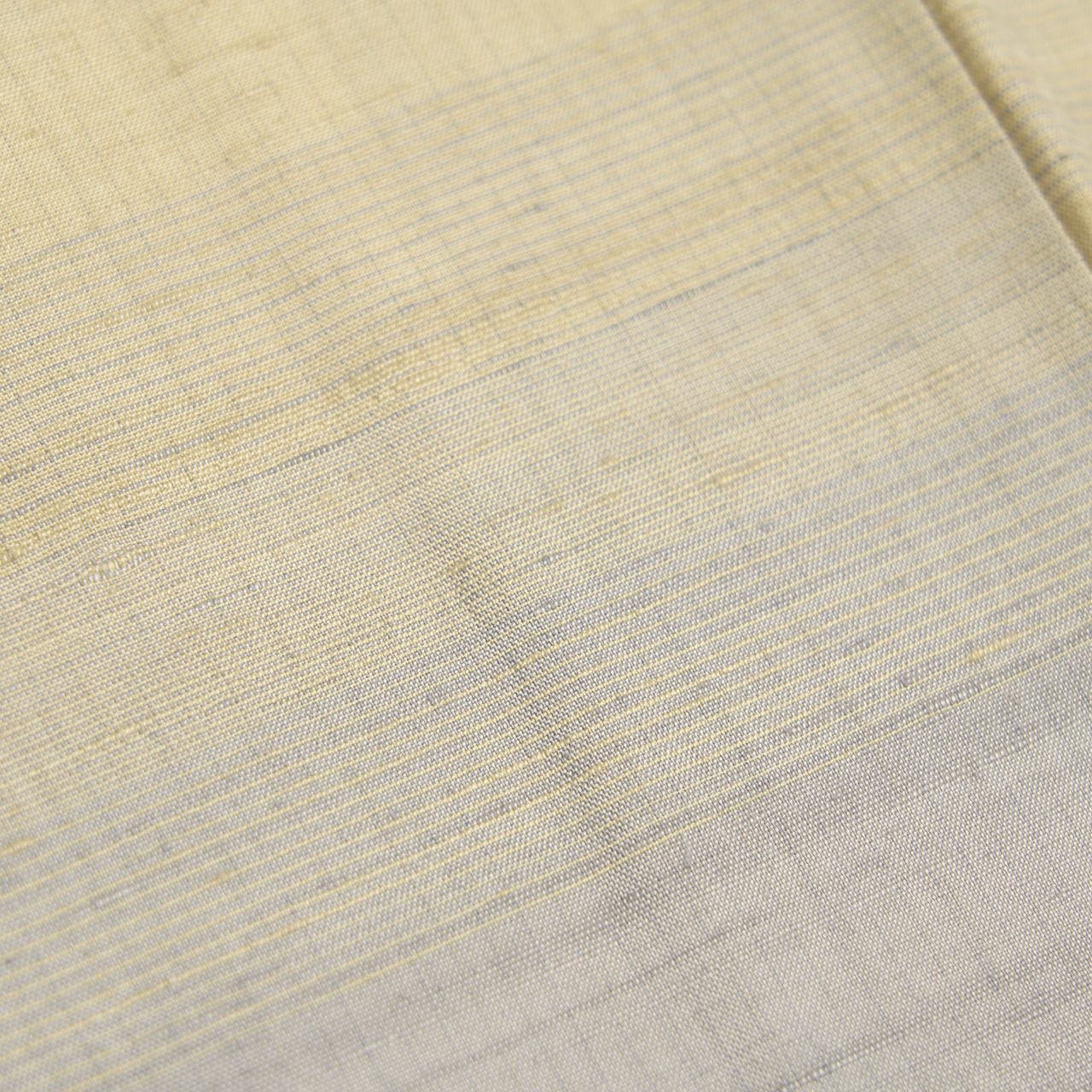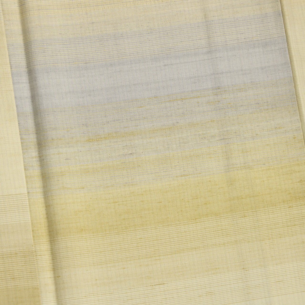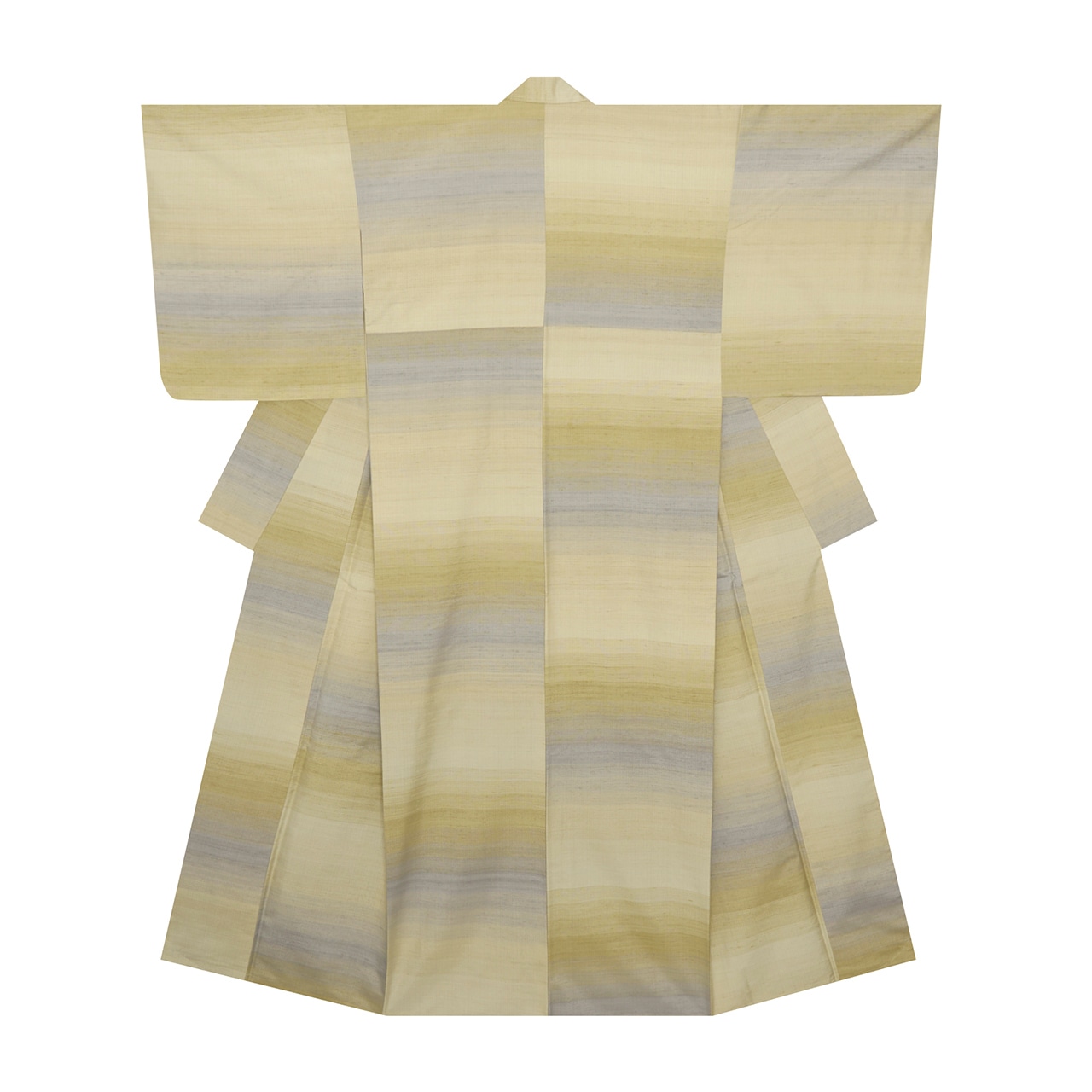 風合いを良くするために、緯糸には真綿から手引きした糸を使用されていると書かれていますが、とてもフワッとした綺麗な光沢があり、地色のベージュの部分も一段明るく感じられますが、何といっても段変わりに織り込まれた暈しの織りがとても洒落ています。