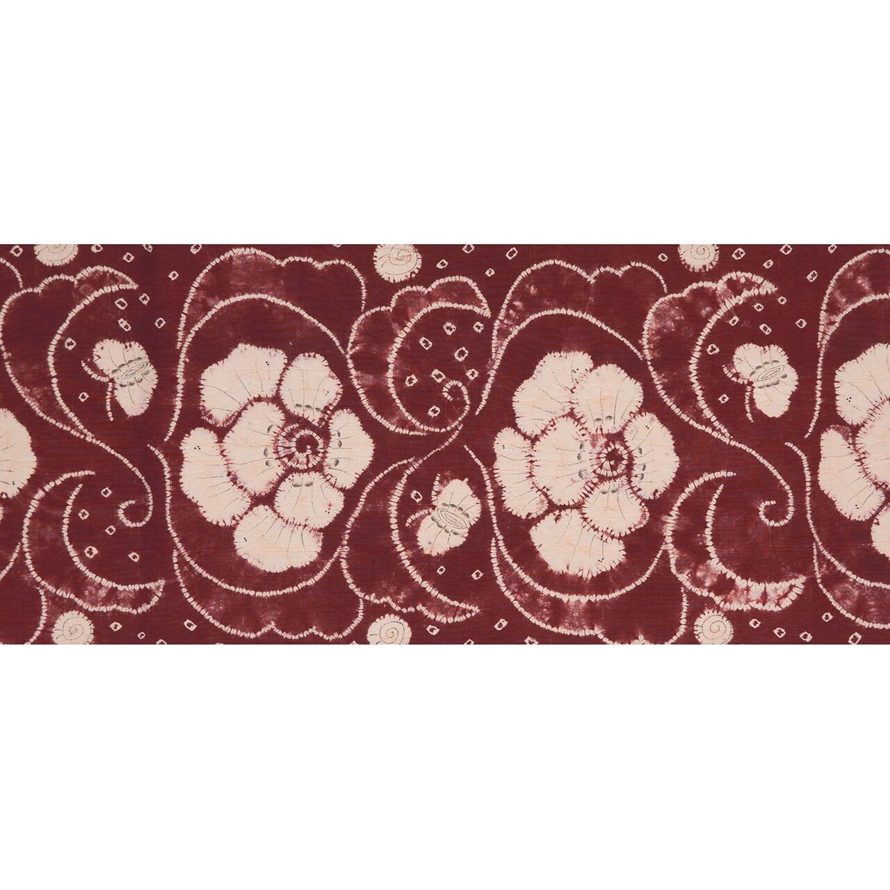 同じ図案が連続していますが、絞り染めで染められているために、偶発的な発色の違いやお花などの表情の違いが楽しく見られます。