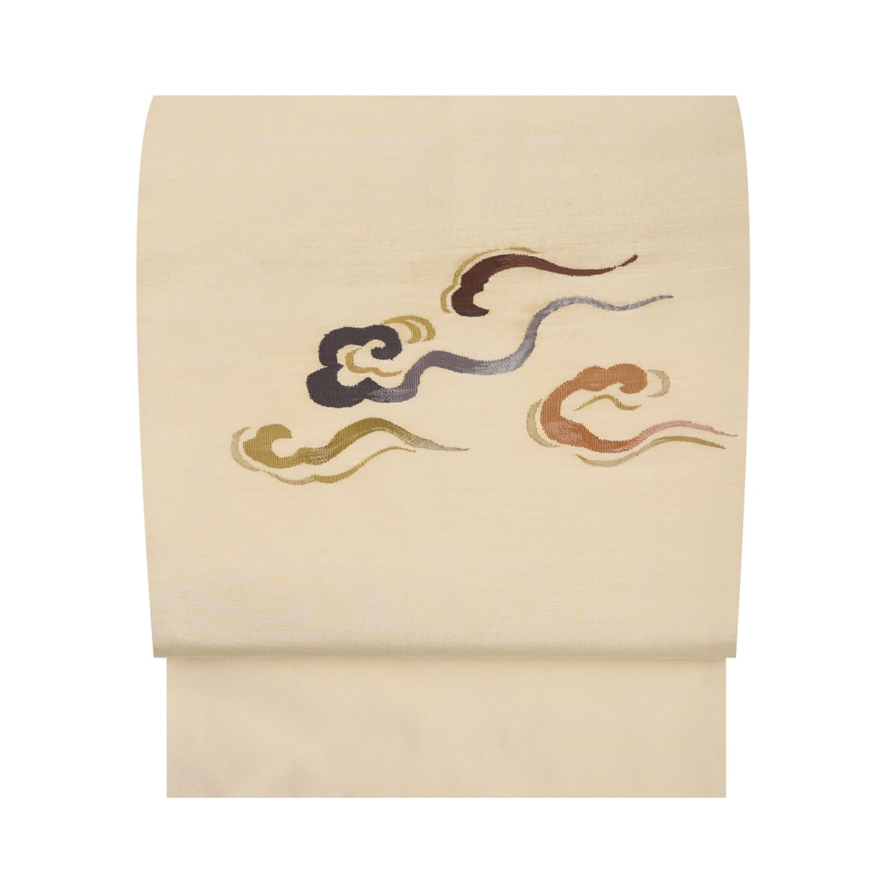 三越扱 瑞雲文様 すくい織 九寸名古屋帯【中古】