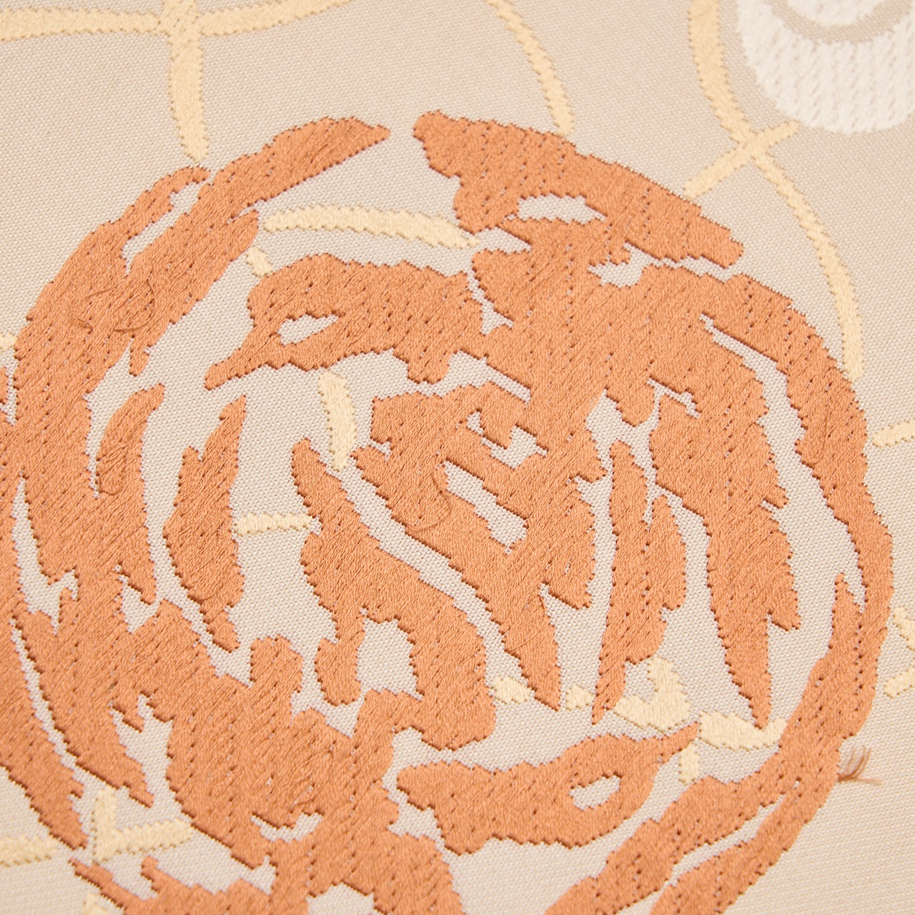 フォーマルなお席でお召しいただいても、淡い色調でクリアに織り出された向鳥の丸紋が程よい華やかさで、素敵な装いを演出してくれることと思います。