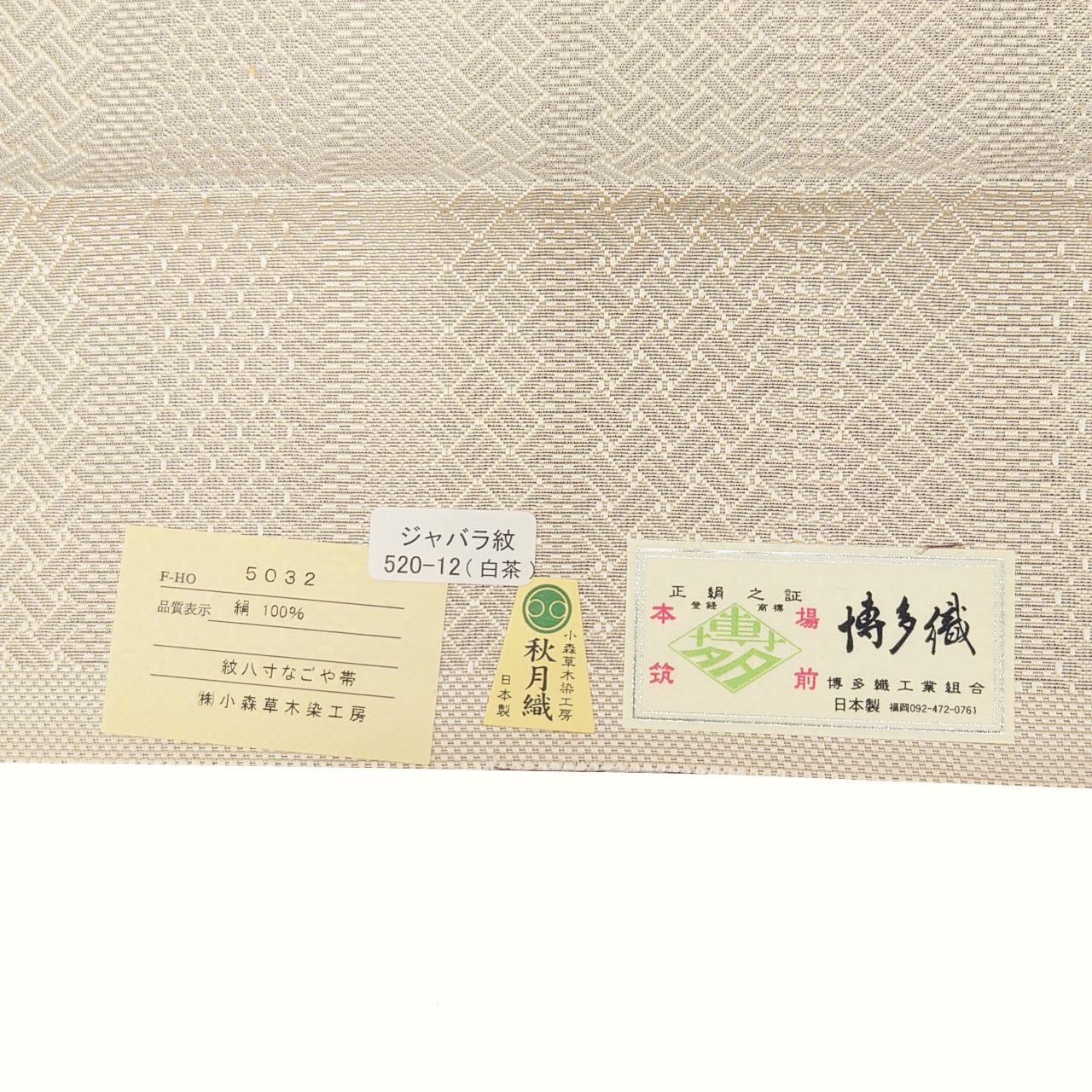 小森草木染工房 本場筑前博多織 「ジャバラ紋」八寸名古屋帯 【未着用品】