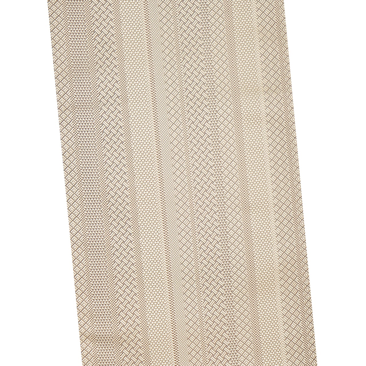 綺麗な渋めのクリーム・練色の地に、焦げ茶・憲法色で織り出された文様は凹凸感があり、憲法色は角度によっては見えなくなりますが、光沢のある織りの文様によって奥行きが生まれ、高級感のあるしっとりとした織物となっています。