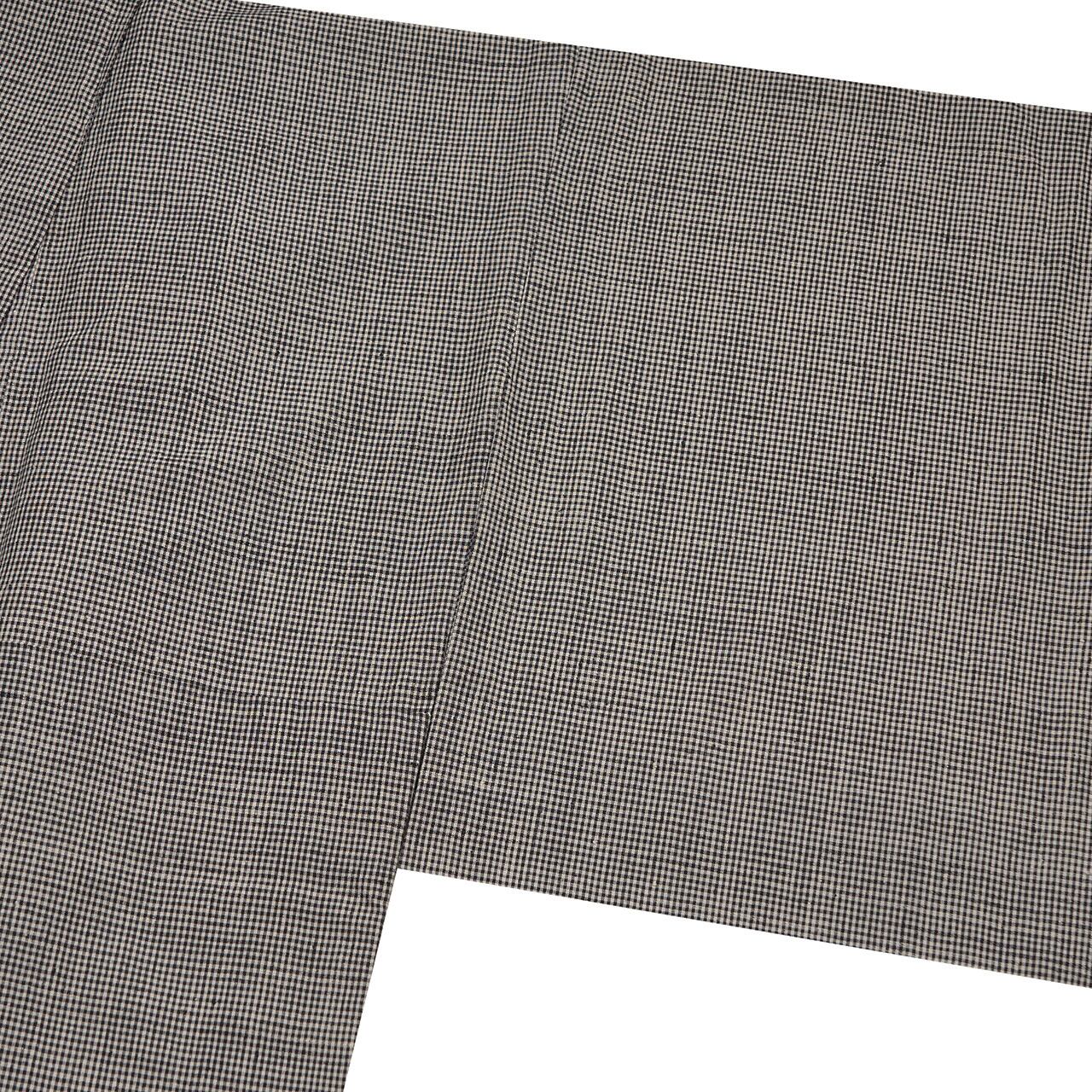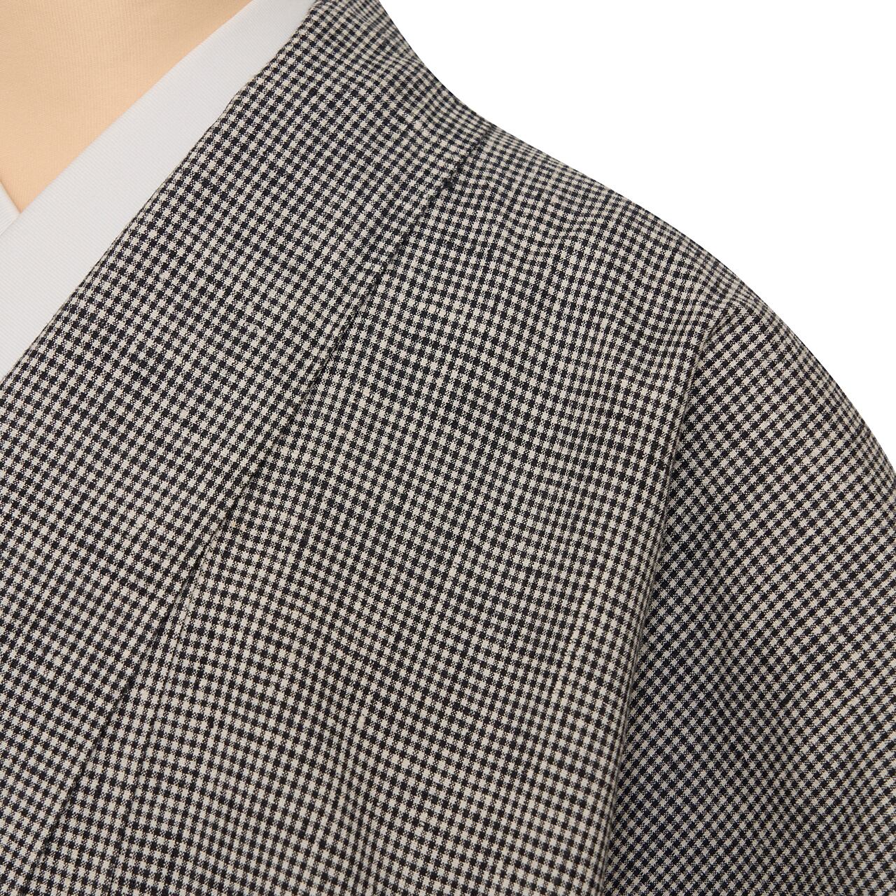 生成り色の地に黒のみじん格子が織り出され、すっきりとしたとてもお洒落な雰囲気となった、手触りの良いさっくりとした質感の紬のお着物です。