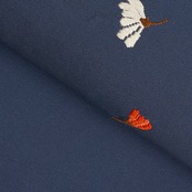 小さく表されたお花は野菊のように見えたり、カラフルなのでマーガレットやデイジーの園芸種の洋花のようにも見えて、モダンで可愛らしい雰囲気に織られています。
