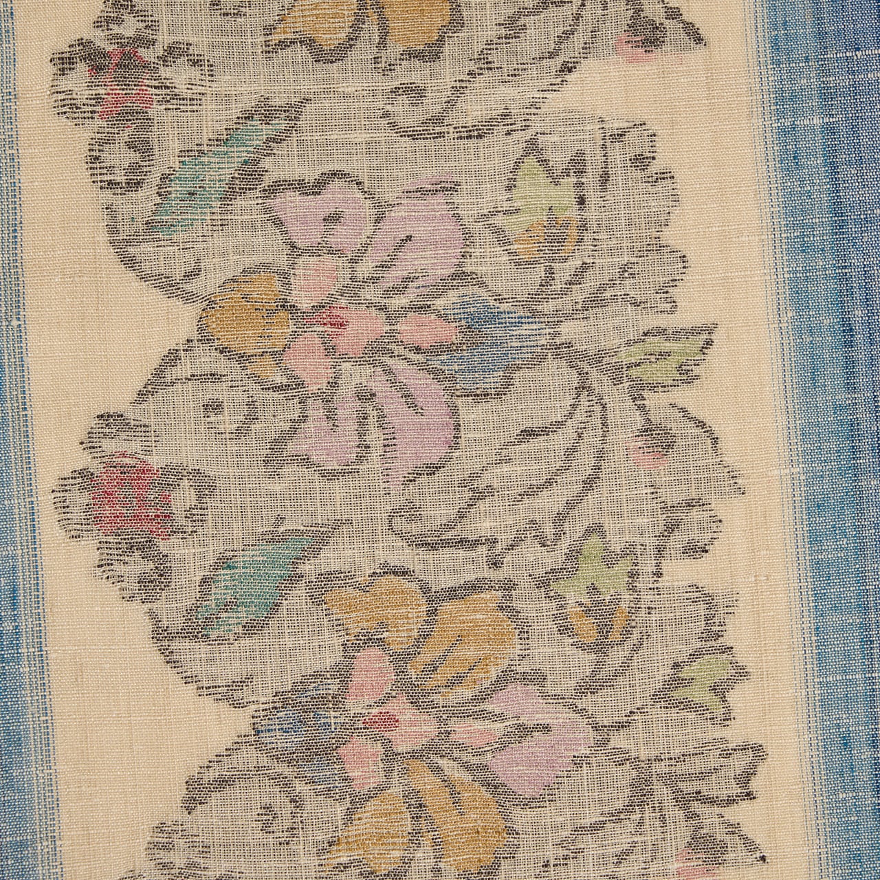 真ん中の花唐草も、淡い色使いの何色もの糸で複雑に織り分けられて、さりげない華やかさのある素敵な模様となっていて、手機の品質の良さが感じられます。