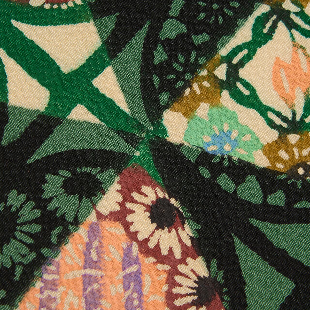 凝ったデザインと色使いがとてもお洒落で、型絵染ならではの工芸的な良さと華やかさを持ち合わせた、とても素敵な大変おすすめの一点です。