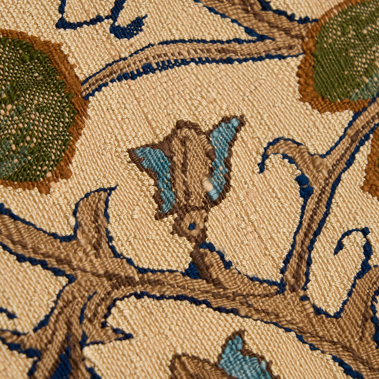 すくい織は爪掻き綴れ織と似たような技法で、非常に高度な技術を要するもので、一日に数センチほどしか織れないといわれています。